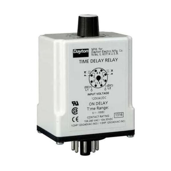 • Time Delay Relay, 120VAC/DC, 10A, DPDT, 9 SEC