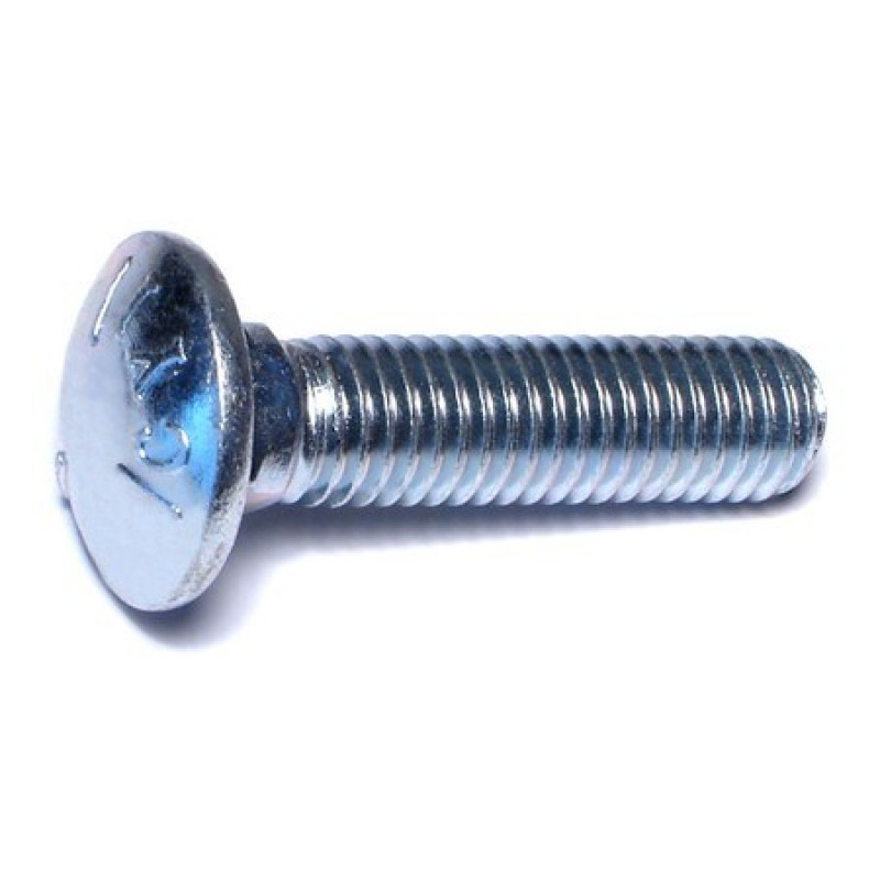 A carriage bolt has a domed or countersunk head, and the shank is topped by a short square section under the head. The square section grips into the part being fixed (typically wood), preventing the bolt from turning when the nut is tightened.