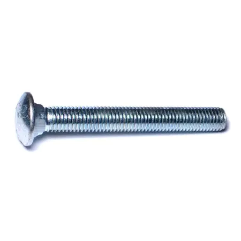 A carriage bolt has a domed or countersunk head, and the shank is topped by a short square section under the head. The square section grips into the part being fixed (typically wood), preventing the bolt from turning when the nut is tightened.