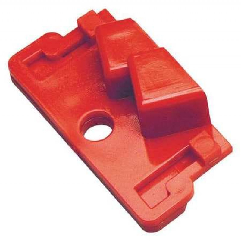 Single Pole Breaker Lockout, Clamp-On, Circuit Breaker Voltage 120/277, For Use With Single-Pole Breakers, Max. Number of Padlocks 1, Padlock Shackle Max. Dia. 9/32 in, Red, Height 13/16 in, Width 1 1/8 in, Length 2 1/4 in, Material Polycarbonate, Circuit Breaker Poles 1