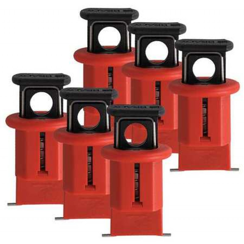 Circuit Breaker Lockout, Pin-Out, Wide, Max. Number of Padlocks 6, Padlock Shackle Max. Dia. 9/32 in, Red, Height 1 5/8 in, Width 13/16 in, Length 9/16 in, Material Fiberglass Reinforced Nylon, Package Quantity 6