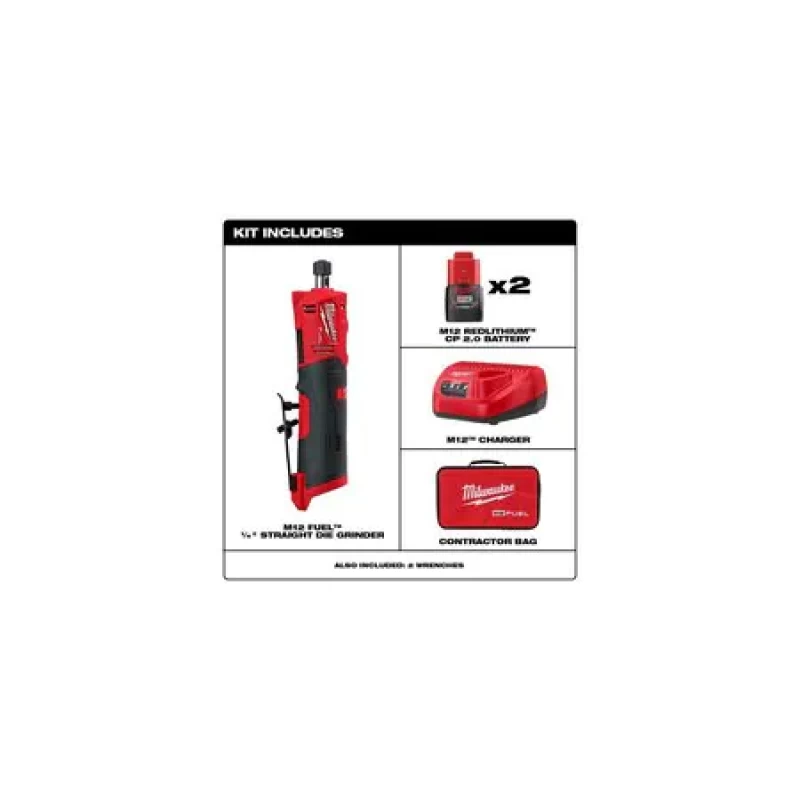 The MILWAUKEE® M12 FUEL™ 1/4" Straight Die Grinder Kit is designed to replace pneumatic die grinders. The die grinder delivers up to .3 HP performance to outperform pneumatic die grinders by 20%. The M12™ inline die grinder has 3-Mode RPM control and a responsive variable-speed trigger providing unmatched control with most common accessories. The cordless die grinder provides greater access and mobility, eliminating the frustrations of hoses and compressors. This kit includes two M12™ REDLITHIUM™ 2.0 batteries.