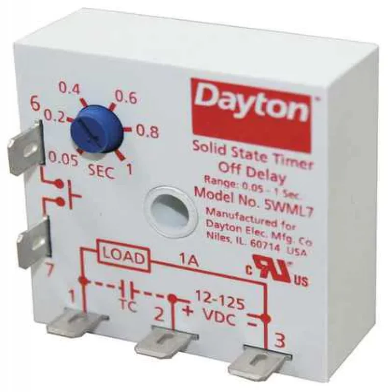 Single Function Encapsulated Timing Relay, Function - Timing Relay Off Delay, Input or Control Voltage 12 to 125V DC, DC Contact Rating - Relay 1.00A @ 24V, Mounting - Relay Surface, Contact Form - Relay SPST-NO, Adjustment Method - Timer Potentiometer, Min. Time Setting - Timer 0.05 sec, Max. Time Setting - Timer 1 sec, Type of Output Solid State