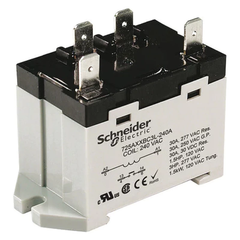 Enclosed Power Relay, Coil Volts 120V AC, AC Contact Rating - Relay 30A @ 277V, DC Contact Rating - Relay 30A @ 28V, Number of Pins - Relay 4, Contact Form - Relay SPST-NO, Mounting - Relay Bottom Flange, DIN Rail, Power Consumption - Relay 2.5 VA, Contact Material Silver Alloy, Electrical Connection - Power Relay Screw