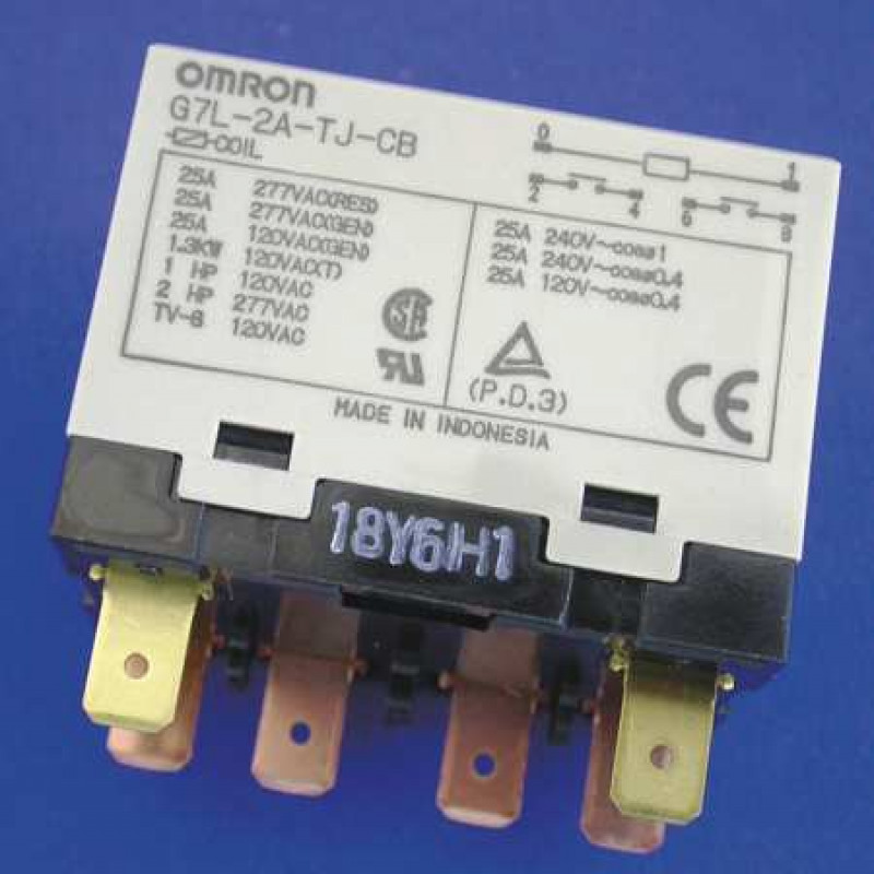 Enclosed Power Relay, Coil Volts 12V DC, AC Contact Rating - Relay 25A @ 240V, Number of Pins - Relay 6, Contact Form - Relay DPST-NO, Mounting - Relay Bracket, Power Consumption - Relay 1.9 W, Contact Material Silver Alloy, Electrical Connection - Power Relay 1/4 in Tab Terminal