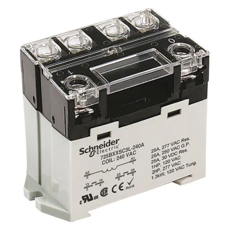 Enclosed Power Relay, Coil Volts 120V AC, AC Contact Rating - Relay 25A @ 277V, DC Contact Rating - Relay 25A @ 28V, Number of Pins - Relay 6, Contact Form - Relay DPST-NO, Mounting - Relay Bottom Flange, DIN Rail, Power Consumption - Relay 2.5 VA, Contact Material Silver Alloy, Electrical Connection - Power Relay Screw