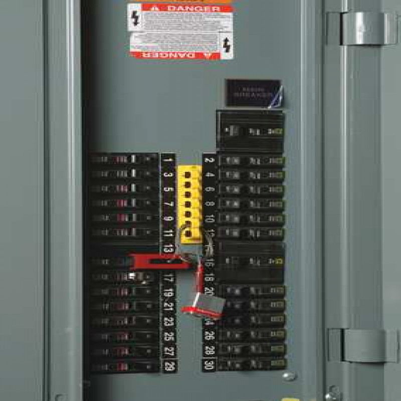 Circuit Breaker Locking Cable Kit, Cable Shackle, Circuit Breaker Voltage 120/277, Padlock Shackle Max. Dia. 9/32 in, Red
