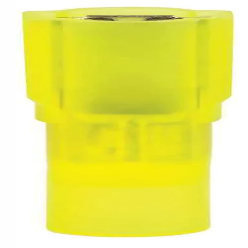 Female Disconnect, Insulation Full, Insulation Type Nylon, Insulation Color Yellow, Wire Range 12 to 10 AWG, Tab Size 0.032 in x 0.250 in, Barrel Inside Dia. 0.128 in, Max. Temp. 221 Degrees F, Max. Voltage 600 V, Overall Length 0.99 in, Seam Butted, Connection Material Tin-Plated Brass, Standards CSA Certified, RoHS Compliant, UL Listed, Connection Type Crimp, Package Quantity 25