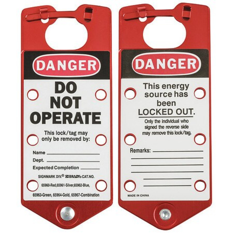 Brady Labeled Lockout Hasp include characteristics like: Material: Aluminum, Color: Red.