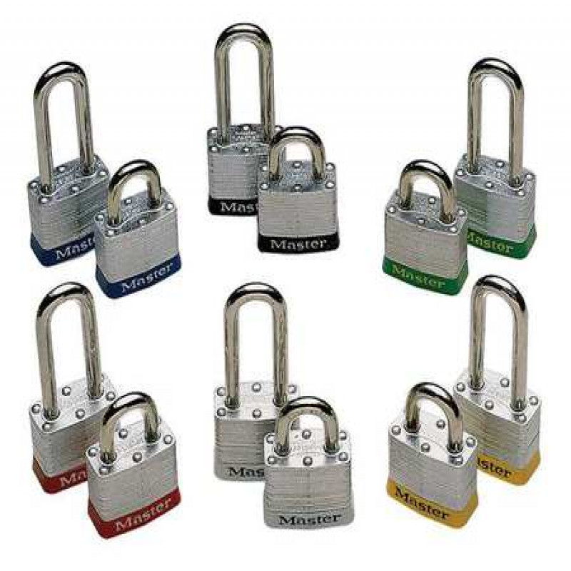 Lockout Padlock, Key Type Alike, Body Material Steel, Shackle Dia. 9/32 in, Shackle Height 3/4 in, Shackle Material Hardened Steel, Shackle Width 5/8 in, Body Width 1 9/16 in, Body Height 1 1/4 in, Body Finish Laminated, Body Color Blue, Shackle Type Open, Bumper Color Blue