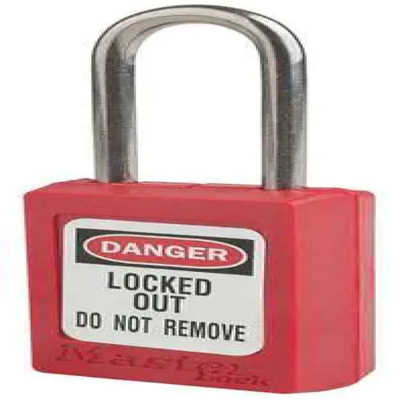 Lockout Padlock, Key Type Alike, Body Material Thermoplastic, Shackle Dia. 3/16 in, Shackle Height 1 1/2 in, Shackle Material Stainless Steel, Shackle Width 5/8 in, Body Width 1 3/8 in, Body Height 1 13/16 in, Body Color Red, Shackle Type Open, Package Quantity 12
