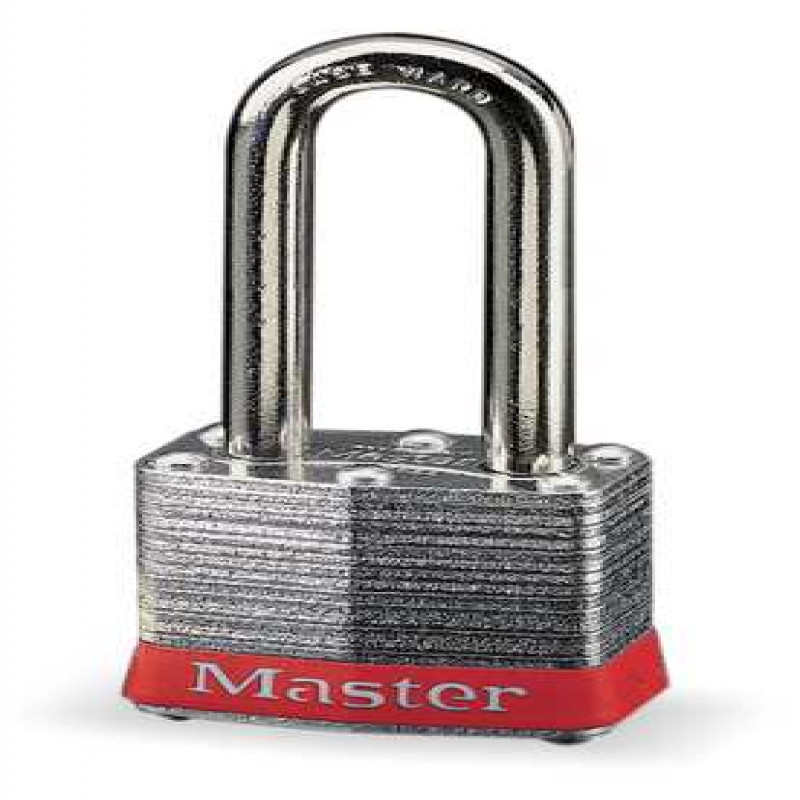 Lockout Padlock, Key Type Different, Body Material Steel, Shackle Dia. 9/32 in, Shackle Height 2 in, Shackle Material Hardened Steel, Shackle Width 5/8 in, Body Width 1 9/16 in, Body Thickness 3/4 in, Body Height 1 1/4 in, Body Finish Laminated, Body Color Red, Shackle Type Extended, Bumper Color Red, Number of Bumpers 1