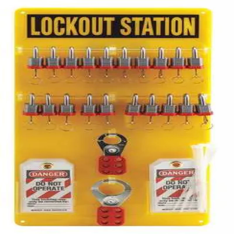Lockout Station, Filled, Lockout Application General Lockout/Tagout, Number of Components 48, Number of Padlocks Included 20, Included Padlock Body Material Steel, Height 23 1/2 in, Width 11 1/2 in, Depth 3/16 in, Color Yellow, Material Polycarbonate, Max. Number of Padlocks 20, Wall Mounting Yes, Portable No