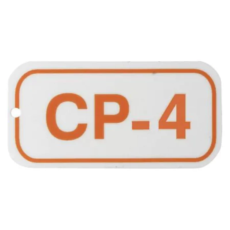 Lockout Tag, Material Polypropylene, Legend CP-4, Height 1 1/2 in, Width 3 in, Withstand Pull Force Not Rated, Hole Size 1/8 in, Header No Header, Legend Color Orange, Background Color White, Legend Style Text, Write on Surface No