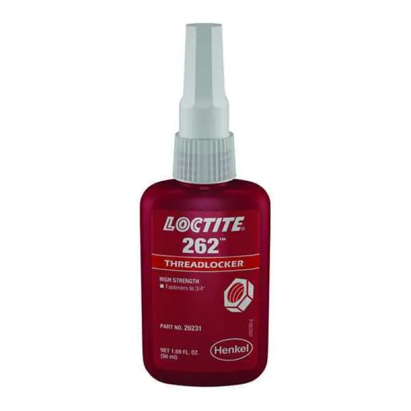 Threadlocker, Threadlocker, Threadlocker Strength High, Threadlocker Color Red, Threadlocker Disassembly Permanent, Physical Form Liquid, Threadlocker Container Bottle, 250 mL, Chemical Type Anaerobic, For Fastener Dia. Up to 3/4 in, Begins to Harden 10 min, Series 262, Gap Fill 0.005 in, Full Cure 24 hr, Temp. Range -65 Degrees to 300 Degrees F, Flash Point Greater Than 93.3 Degrees C, Specific Gravity 1.05, Viscosity 1800 to 5000 cP, Removable With Heat and Hand Tools