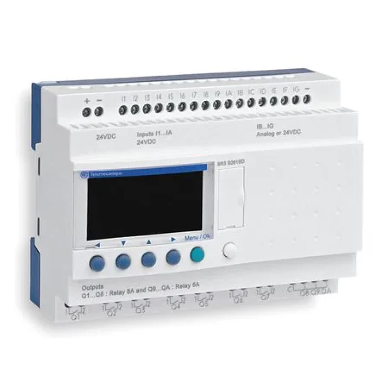 Logic Relay, Input Voltage 100 to 240V AC, Output Type Relay, 8.0 A Amps, Number of Inputs 16, Number of Outputs 10, Counters 16, Timers 16, Yes Clock, LCD Display, Depth 2.34 in, Height 4.24 in, Width 4.91 in