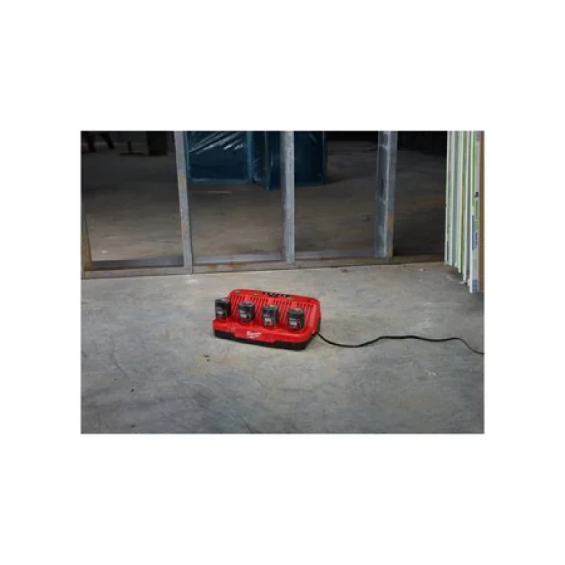 Less swapping, more charging. The M12™ four bay sequential charger reduces the amount of time spent changing out batteries, increasing productivity on the jobsite. Its slim design makes it the perfect solution for a bench top, as well as storage and transportation of packs on and off the jobsite. Featuring REDLINK™ Intelligence, it communicates directly with the battery to monitor cell voltage, temperature, and charge status to optimize the performance and extend the life of the pack. The charger offers a compact design, integrated hang holes for vertical mounting, and a skip button to select a desired battery.