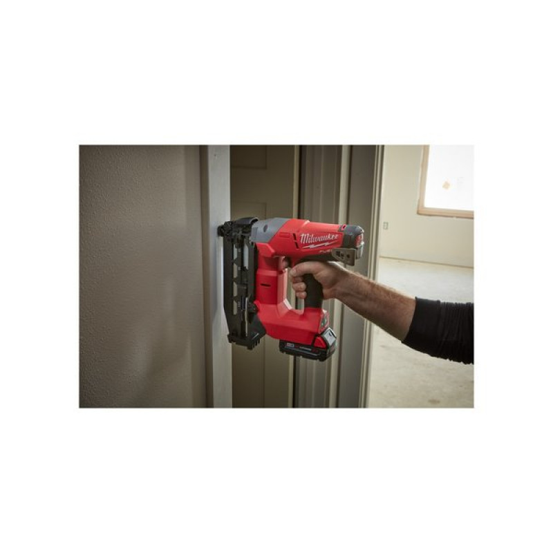 The M18™ FUEL™ 16 gauge straight finish nailer delivers on the promise of peak productivity at your work site, providing unmatched driving power, speed and efficiency – with practically no set up and minimal maintenance. Using the exceptional application speed, power and durability of our compact POWERSTATE™ brushless motor, plus our ready to fire cylinder design, this tool is capable of fully sinking 2-1/2 in. nails into solid oak with zero ramp-up time. This 18 Volt nailer operates from the revolutionary REDLITHIUM™ battery for unbeatable strength and run-time, eliminating the mess and cost of gas cartridges. It also includes REDLINK Plus™ intelligence, the most advanced electronic system on the market, to prevent damage to the nailer and battery from overloading and overheating. The M18™ FUEL™ nailer not only primes you for top performance; it also creates the experience of a pneumatic nailer that professional carpenters and remodelers expect, without the hassle of compressors and hoses.