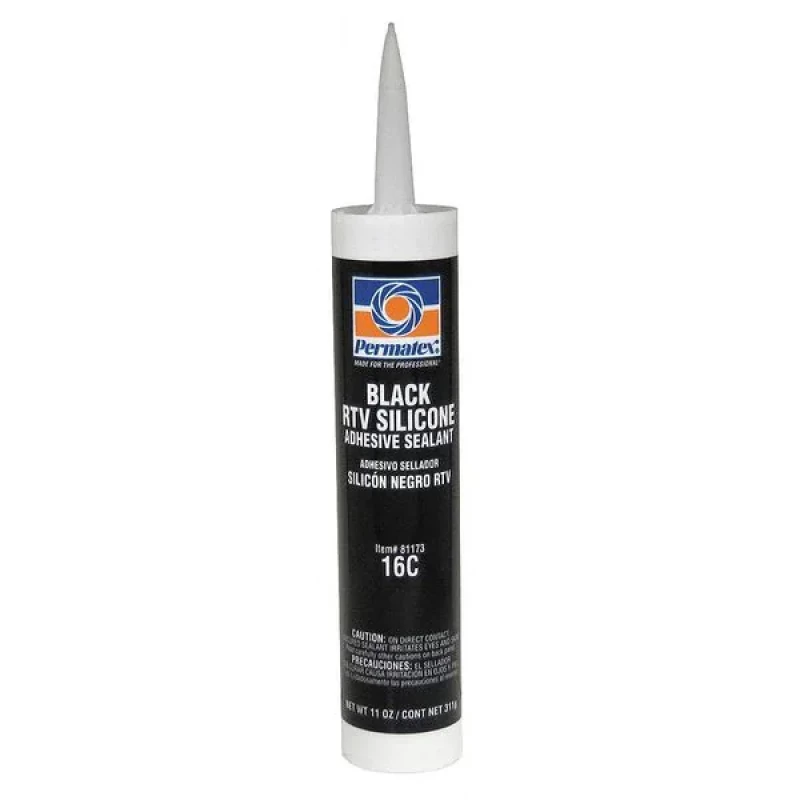 RTV Silicone Sealant, Multipurpose, 12.9 oz, Black, Temp. Range -75 to 450 Degrees F, Specific Gravity 1.07, Viscosity Paste, Flash Point 200 Degrees F, Full Cure 24 hr, Begins to Harden Not Specified, Substrates Fabric, Glass, Metal, Plastics, Vinyl and Weather Stripping, Waterproof, Flexible Seal, Resistant to Oil, Water, Weather, Vibration, and Grease, Non-Paintable, Replaces Gaskets, Seals and Dressings, Standards Meets Mil-Spec Mil-A-46106B, Type I and Certified to ANSI/NSF Standard 51