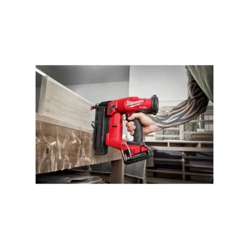 The MILWAUKEE® M18 FUEL™ 18ga Brad Nailer delivers peak productivity, providing unmatched nailing performance without the hassle of a compressor and hose. Using a nitrogen air spring mechanism, the finish nailer consistently sinks nails to the proper depth in hard and soft woods while leaving clean nail holes matching the head of the nail. The combination of Milwaukee's POWERSTATE™ Brushless Motor and REDLINK PLUS™ Intelligence delivers unmatched fire rate with zero ramp-up time for all-day efficiency. The cordless brad nailer operates using Milwaukee's REDLITHIUM™ Batteries (not included) and sealed compressed nitrogen to drive each nail, eliminating the cost of gas cartridges and associated maintenance. The 18 gauge nailer is compact and lightweight, providing unmatched access into tight spaces and limiting fatigue. The M18 FUEL™ 18ga Brad nailer delivers pneumatic performance that professional carpenters and remodelers expect with the freedom and convenience of cordless.