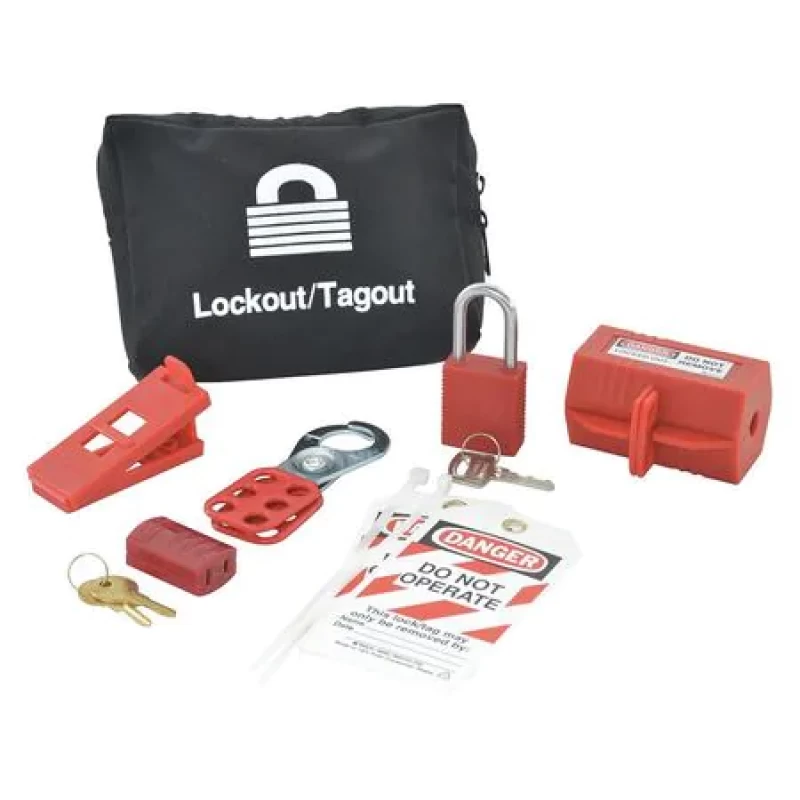 Portable Lockout Kit, Filled, Portable Yes, Lockout Application Electrical Lockout, Number of Components 6, Number of Padlocks Included 1, Case Style Pouch, Gray, Case Height 6 in, Case Width 7 in, Case Depth 2 in, Case Material Canvas, Language English
