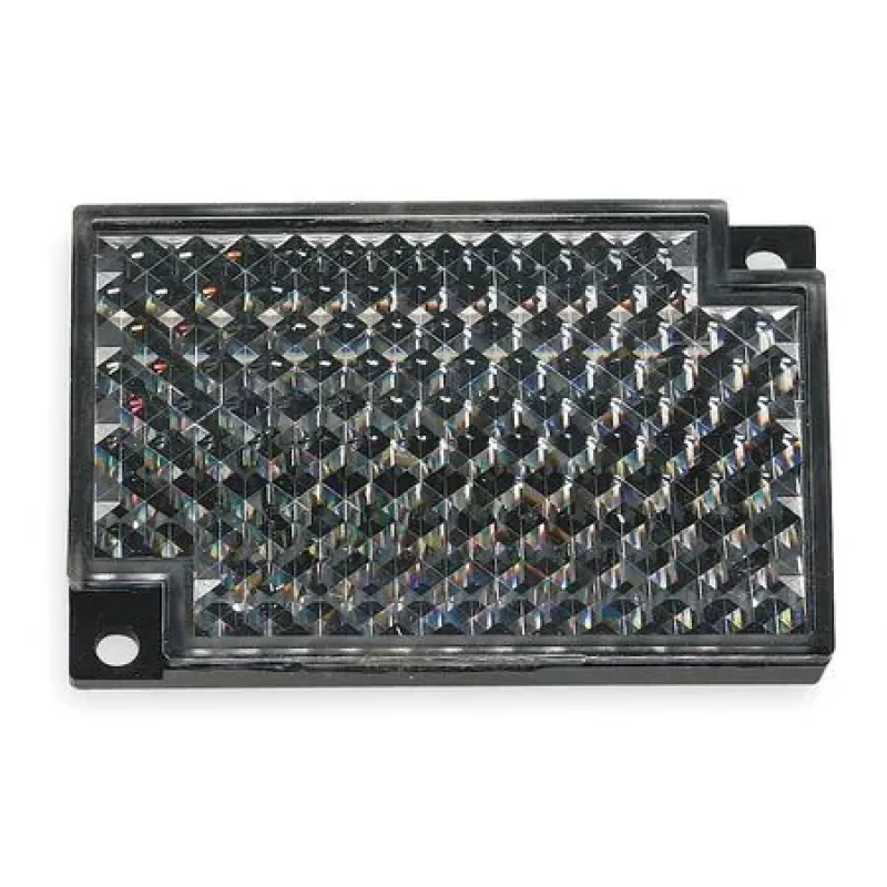 Flat Reflector, For Use With Retroreflective Sensors, Color Black, Material Acrylic, Rectangular Shape, Depth 0.2969 in, Width 1.5781 in, Length 2.3594 in, 131 Degrees F Max. Temp., Mounting Hole Upper Left/Lower Right
