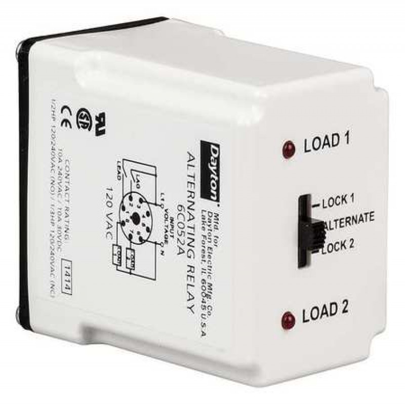 Item - Relay: Alternating RelayCoil Volts: 24V ACAC Contact Rating - Relay: 10A @ 240VDC Contact Rating - Relay: 10A @ 28VBase Type - Plug In Relay: OctalNumber of Pins - Relay: 8Mounting - Relay: Plug InPower Consumption - Relay: 3.0 VAContact Form - Relay: DPDT Cross-WiredOperating Modes - Alternating Relay: Alternate, Always Energize Load 1, Always Energize Load 2Base Type: OctalBody Width - Relay: 2.4 inItem: Alternating RelayOverall Height - Relay: 3.1 inAmps: 10Contact Form: DPDT Cross-Wired