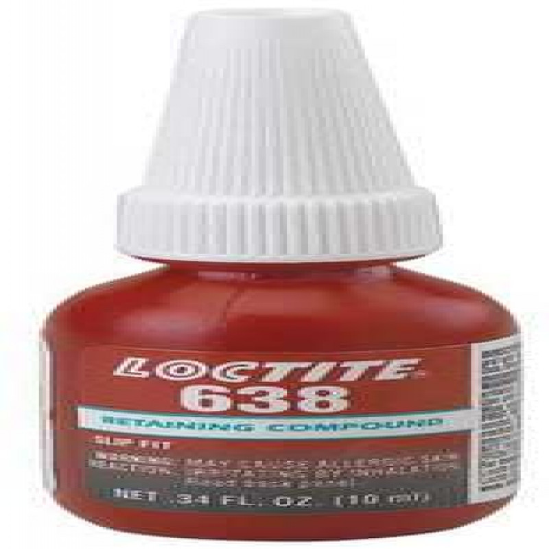 Retaining Compound, Shear Strength (PSI) 4,500, Optimal Usage Temperature -65 Degrees to 355 Degrees F, Gap Fill Size - Retaining Compounds 0.01 in, Container Type - Adhesives Bottle, Container Size - Adhesives 0.34 oz, Series Retaining Compounds, Physical Form Liquid, Max. Temp. (F) 355 Degrees F, Full Cure 24 hr, Compound Type High Strength, Application Slip Fitted Parts, Characteristics Oil Tolerant, Standards CFIA, NSF P1