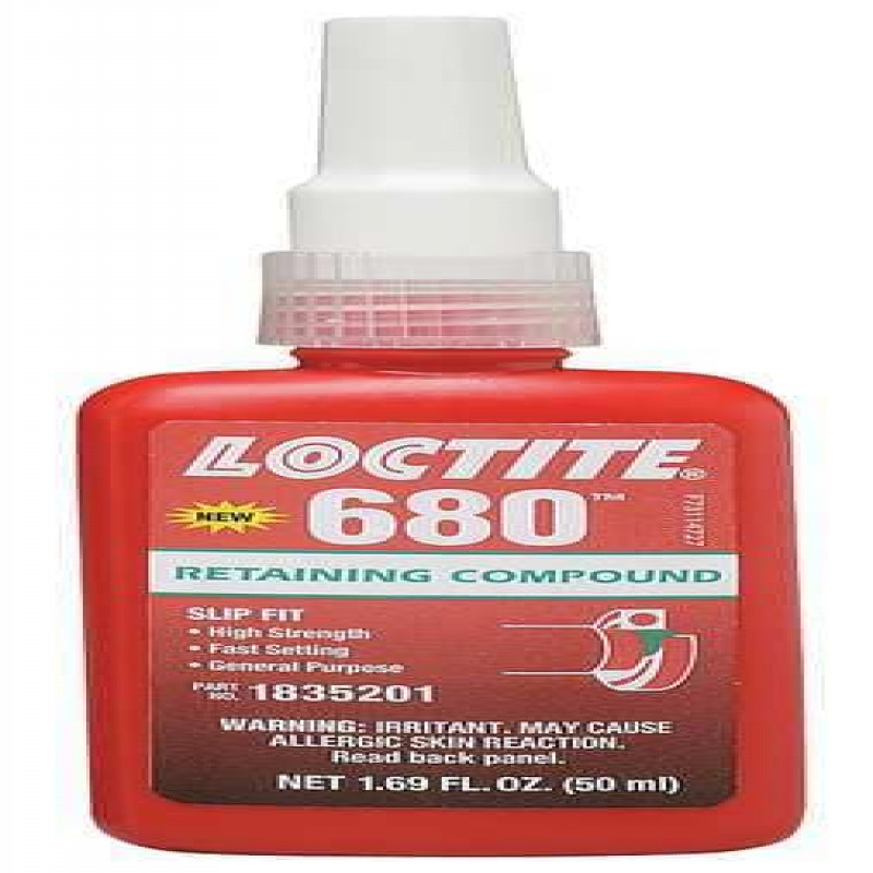 Retaining Compound, Shear Strength (PSI) 4,000, Optimal Usage Temperature -65 Degrees to 355 Degrees F, Gap Fill Size - Retaining Compounds 0.015 in, Container Type - Adhesives Bottle, Container Size - Adhesives 1.69 oz, Series Retaining Compounds, Physical Form Liquid, Max. Temp. (F) 355 Degrees F, Full Cure 24 hr, Compound Type High Strength, Application Slip Fitted Parts, Characteristics Oil Tolerant, Standards ABS, CFIA, NSF/ANSI 61