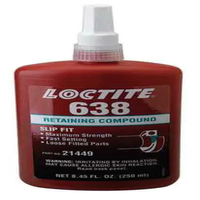 Retaining Compound, Shear Strength (PSI) 4,500, Optimal Usage Temperature -65 Degrees to 355 Degrees F, Gap Fill Size - Retaining Compounds 0.01 in, Container Type - Adhesives Bottle, Container Size - Adhesives 8.45 oz, Series Retaining Compounds, Physical Form Liquid, Max. Temp. (F) -65 Degrees to 300 Degrees , Full Cure 24 hr, Primer 7088, 7649 or 7471, Compound Type Retaining, Application Bonds Cylindrical Fitting Parts, Characteristics High Strength Anaerobic, One Component