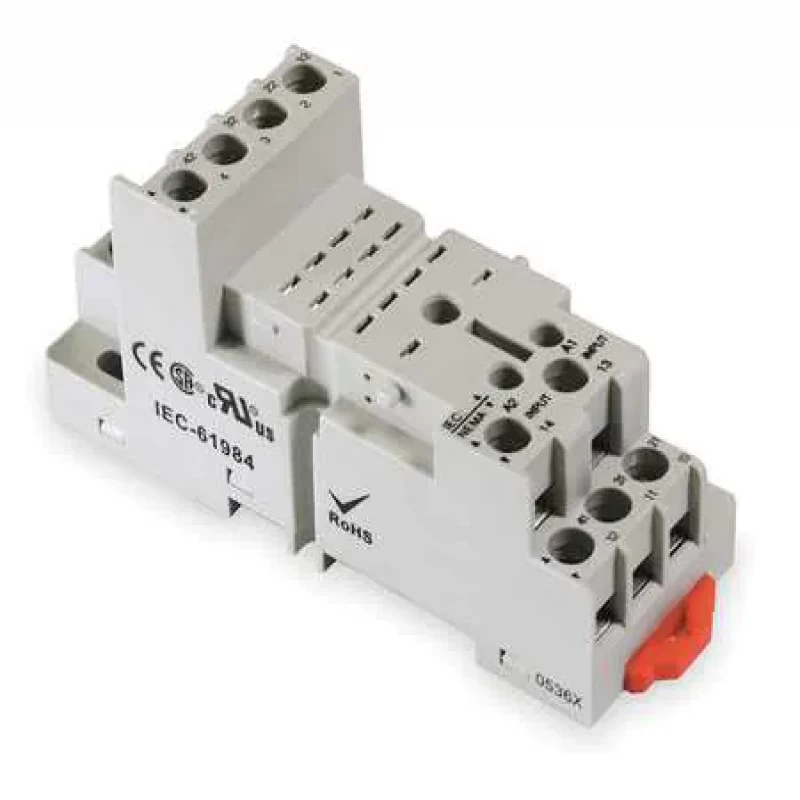 Relay Socket, Socket Type - Relay Elevator, Finger Safe, Base Style - Relay Socket Square, Number of Pins - Relay 14, Contact Form - Relay Socket 4PDT, Contact Rating - Relay Socket 10A @ 300V AC, Mounting - Relay DIN Rail, Surface, Socket Code - Relay G, Electrical Connection - Relay Socket Screw, Height - Relay Socket 1.57 in, Width - Relay Socket 1.18 in, Depth - Relay Socket 3.3 in, Status Indicator None, Color White, Standards E84694