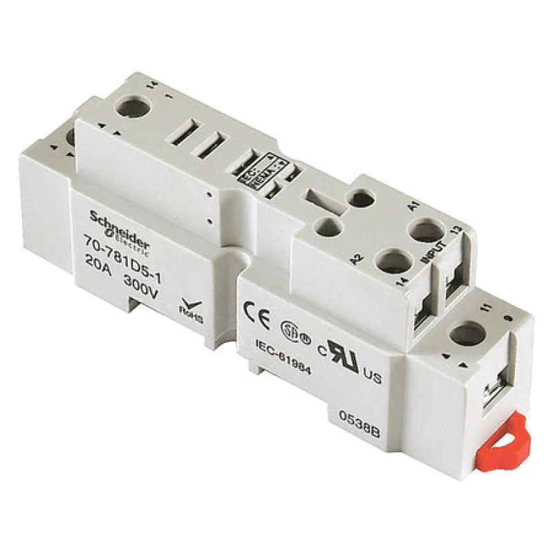 Relay Socket, Socket Type - Relay Elevator, Finger Safe, Base Style - Relay Socket Square, Number of Pins - Relay 5, Contact Form - Relay Socket SPST, Contact Rating - Relay Socket 16A @ 300V AC, Mounting - Relay DIN Rail, Socket Code - Relay L, Electrical Connection - Relay Socket Screw Clamp, Height - Relay Socket 1.18 in, Width - Relay Socket 0.82 in, Depth - Relay Socket 3.33 in, Status Indicator None, Color White, Standards CE, CSA, RoHS, UL Recognized