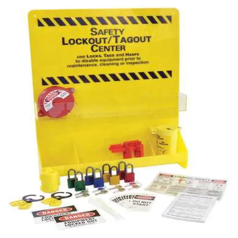 Lockout/Tagout Center, Filled, Lockout Application Electrical/Valve Lockout, Number of Components 102, Number of Padlocks Included 8, Included Padlock Body Material Aluminum, Height 29 in, Width 23 7/8 in, Depth 4 3/8 in, Color Black/Yellow, Material Acrylic, Max. Number of Padlocks 8, Wall Mounting Yes, Portable No