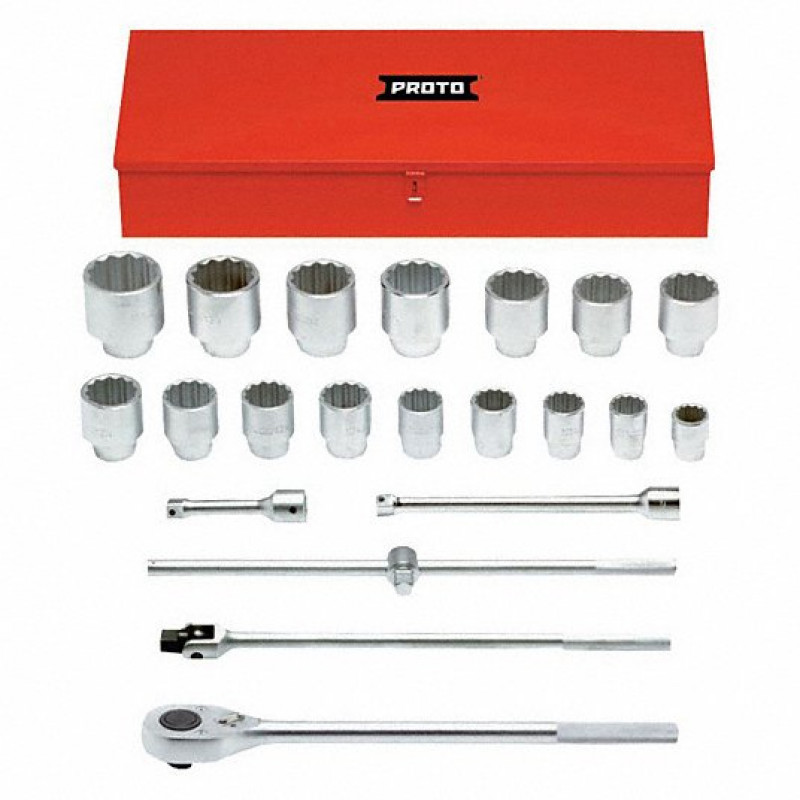 • Includes(1) Ratchet, (1) Tool Box, (16) Sockets, (2) Extensions, (4) Handles