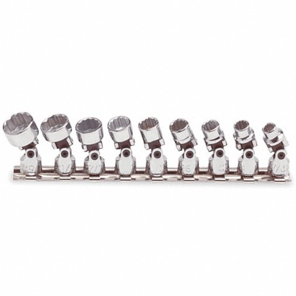 These SAE socket sets come with drive tools and an assortment of sockets for a range of fastener sizes. They come in sizes that are measured in inches and fractions of an inch to fit fasteners with an SAE (inch) size head.