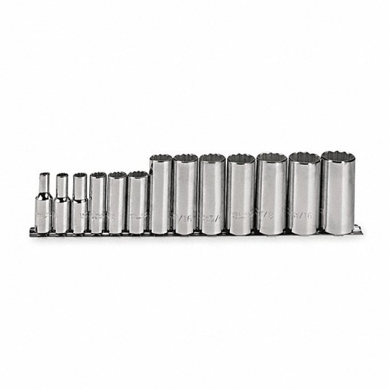 • Deep Socket Style/Size12-Point: 1/4 in, 5/16 in, 3/8 in, 7/16 in, 1/2 in, 9/16 in, 5/8 in, 11/16 in, 3/4 in, 13/16 in, 7/8 in, 15/16 in, 1 in