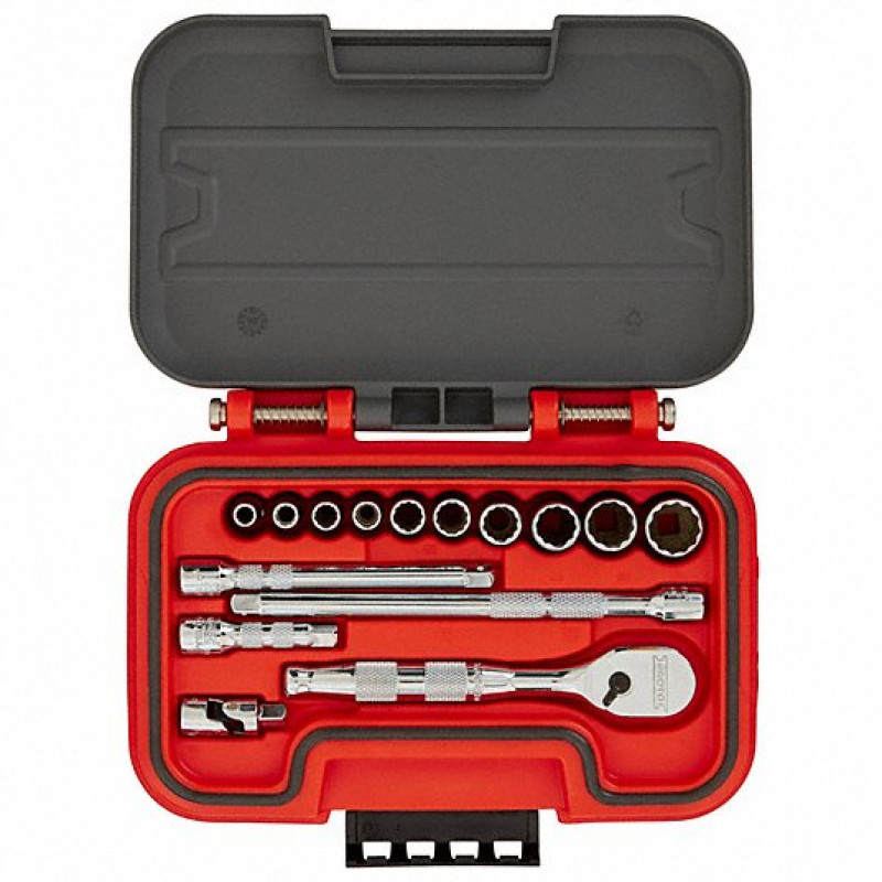 SAE and metric socket sets come with drive tools and an assortment of sockets for a range of fastener sizes. SAE sets come in sizes that are measured in inches and fractions of an inch to fit fasteners with an SAE (inch) size head. Metric sets come in sizes that are measured in millimeters to fit fasteners with a metric size head.