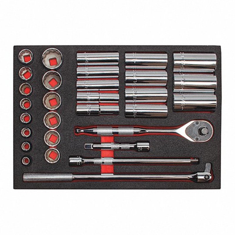Socket Wrench Set, Socket Size Range 3/8 in to 1 1/4 in, Drive Size 1/2 in, Drive Type Hand