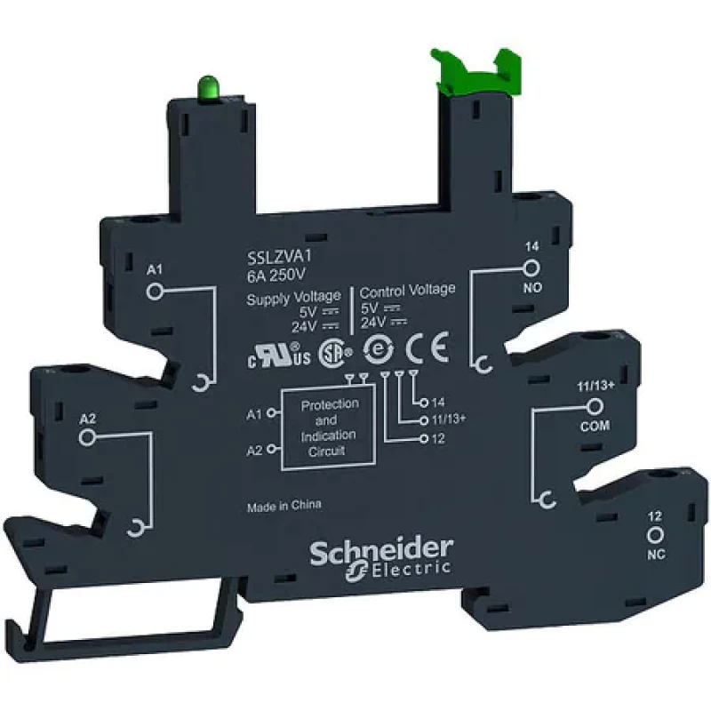 Ssl1 Relay,Screw Socket,5-24VDC,Input, Socket Type - Relay Standard, Base Style - Relay Socket Square, Number of Pins - Relay 5, Contact Form - Relay Socket DPDT, Contact Rating - Relay Socket 6A @ 250V AC, Mounting - Relay Plug In, Socket Code - Relay L, Electrical Connection - Relay Socket Screw, Height - Relay Socket 3.98 in, Width - Relay Socket 0.24 in, Depth - Relay Socket 3.09 in, Status Indicator LED, Color Black, Standards CSA, IEC, UL