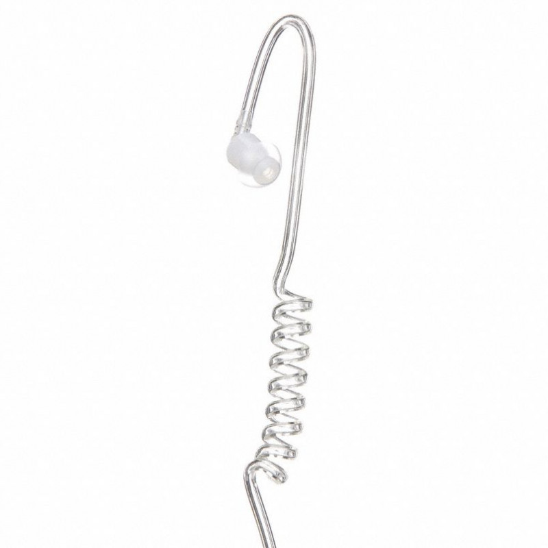 • IncludesIn-Line Microphone, Metal Clip, Push-To-Talk Switch, Transparent Tube with Coiled Cord and Rubber Earbud
