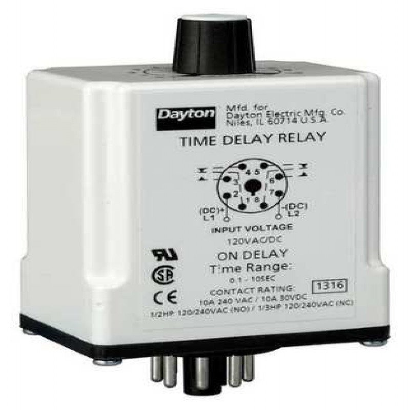 Time Delay Rlay, 120VAC/DC, 10A, DPDT, 8Pins