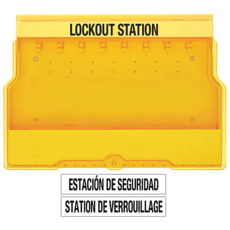 Lockout Station, Unfilled, Number of Components 0, Number of Padlocks Included 0, Height 15 1/2 in, Width 22 in, Depth 4 1/8 in, Color Yellow, Material Polycarbonate, Wall Mounting Yes, Portable No