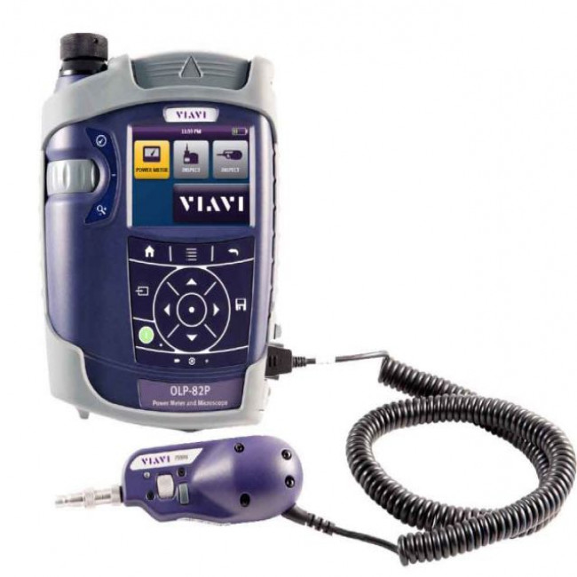 The OLP-82 and OLP-82P (with integrated patch cord microscope) combine fiber inspection and optical power measurement (OPM) into one convenient solution. As part of the SmartClass Fiber family from VIAVI Solutions, these handheld test tools feature a 3.5” color touch screen that allows users to inspect fiber end-faces with automated pass/fail analysis and with either a P5000i probe microscope (connected via USB) or the integrated patch cord microscope (OLP-82P) and also measure optical power at multiple calibrated wavelengths from 780 to 1625nm.