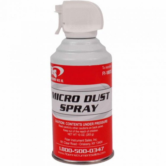 The FIS Canned Air Micro Duster is a time saving cleaning tool with a unique variable pressure trigger that lets you control the dusting pressure. Before removing a fiber optic connector for inspection or cleaning, make sure the area around the connector is free from dust. The FIS Micro Duster includes an extension