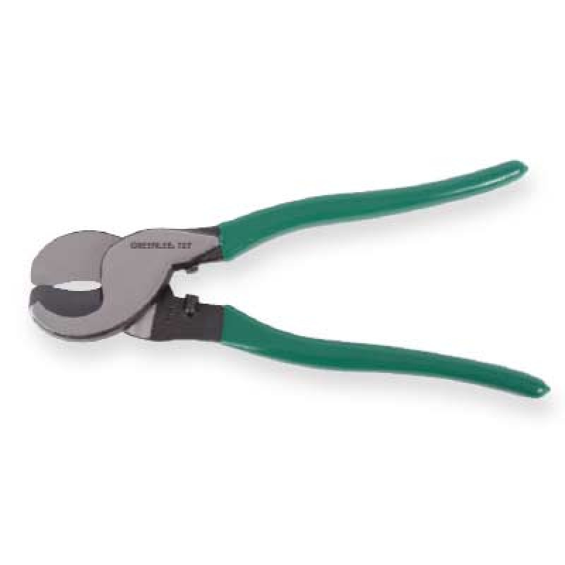This is a utility cable cutter for up to 70mm cable. This manual tool is great for standard power, coaxial, and non-armored cables.